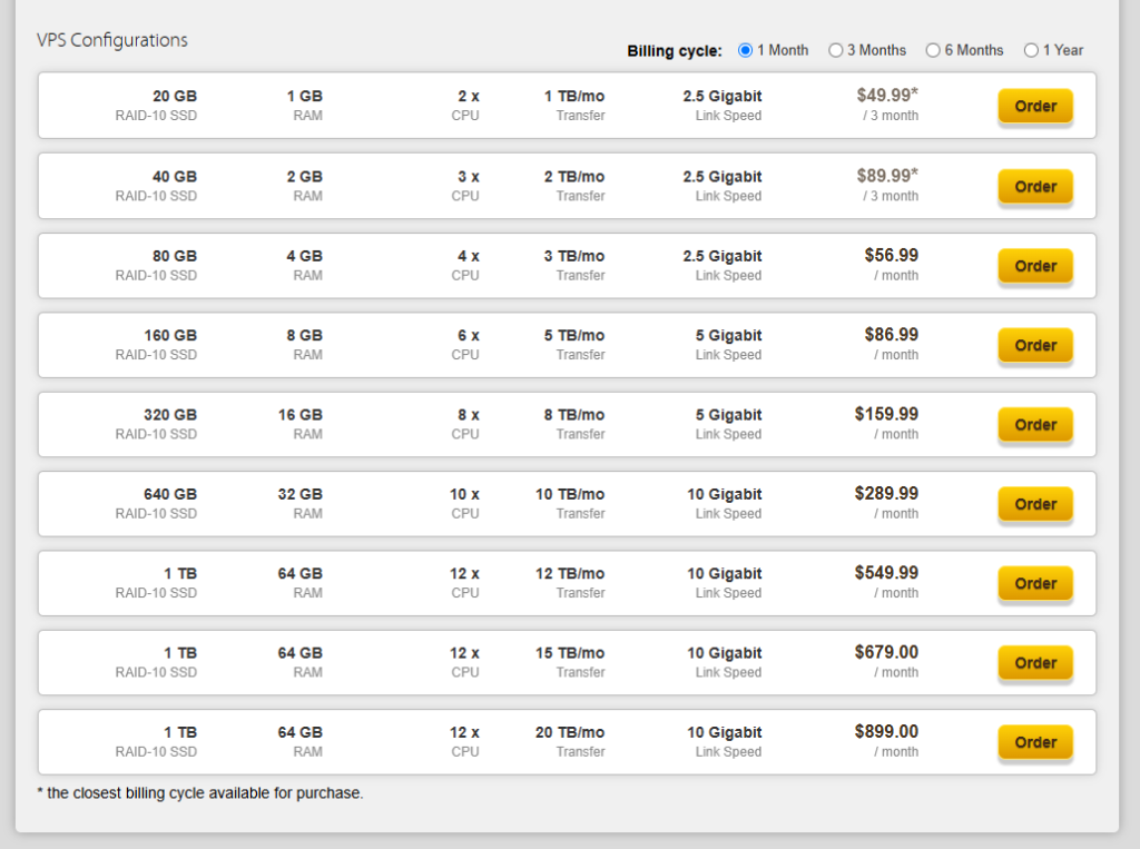 BandwagonHost提供了从入门到高端的多种套餐,主要按存储空间区分,满足不同层级的需求。